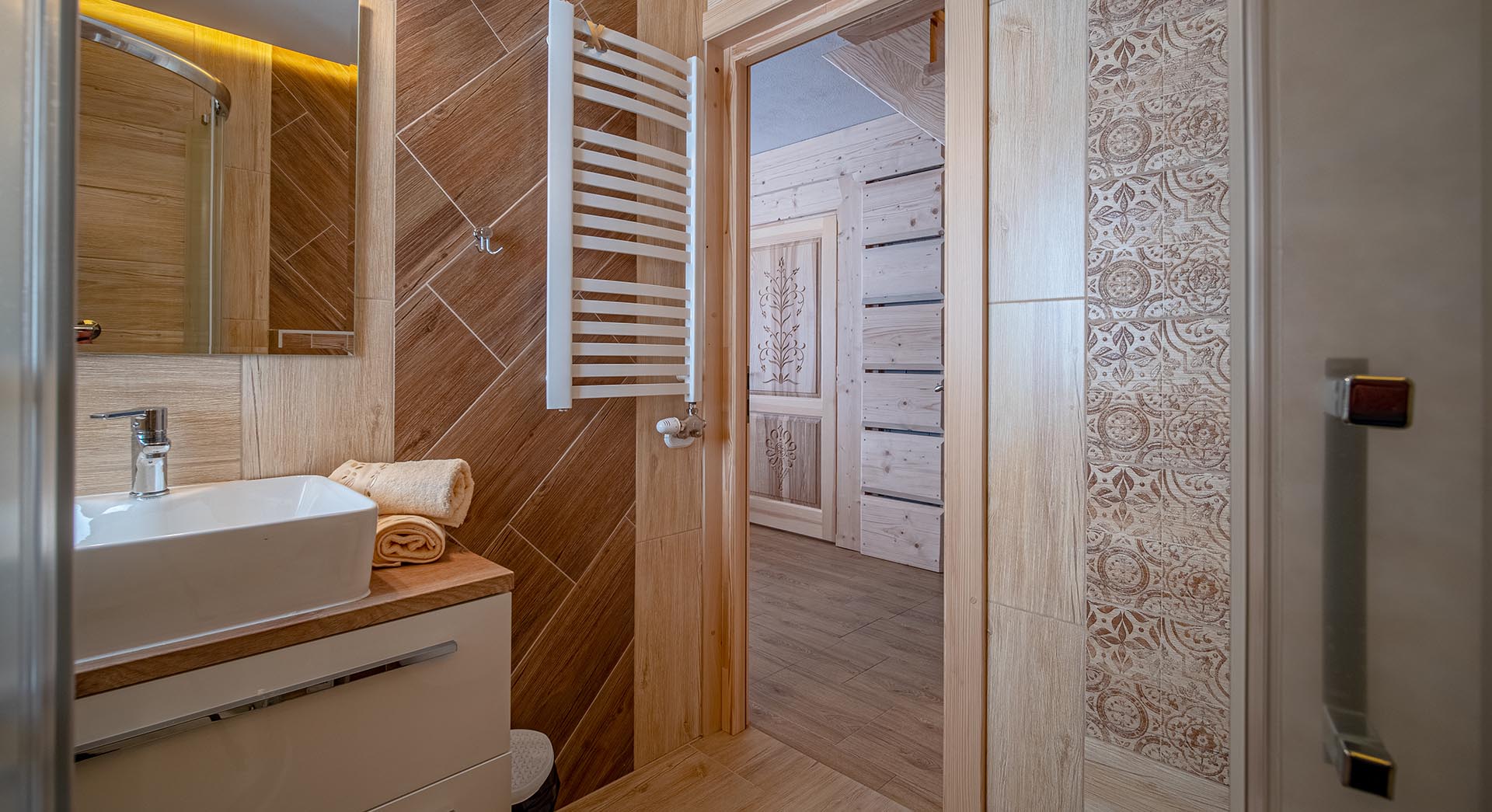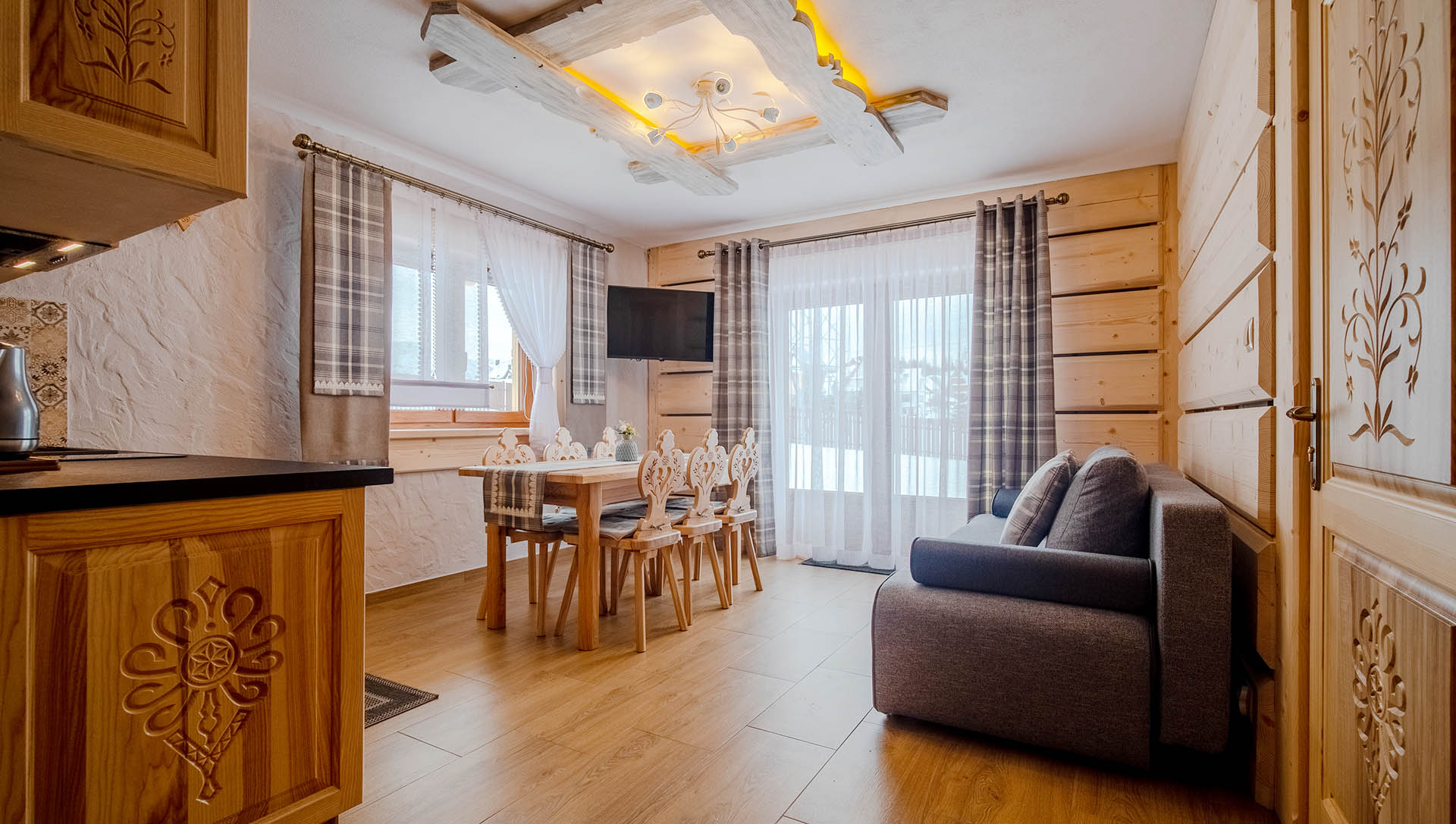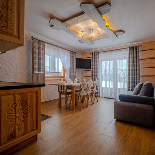 - duża stylowa drewniana góralska izba z kominkiem i otwartym paleniskiem