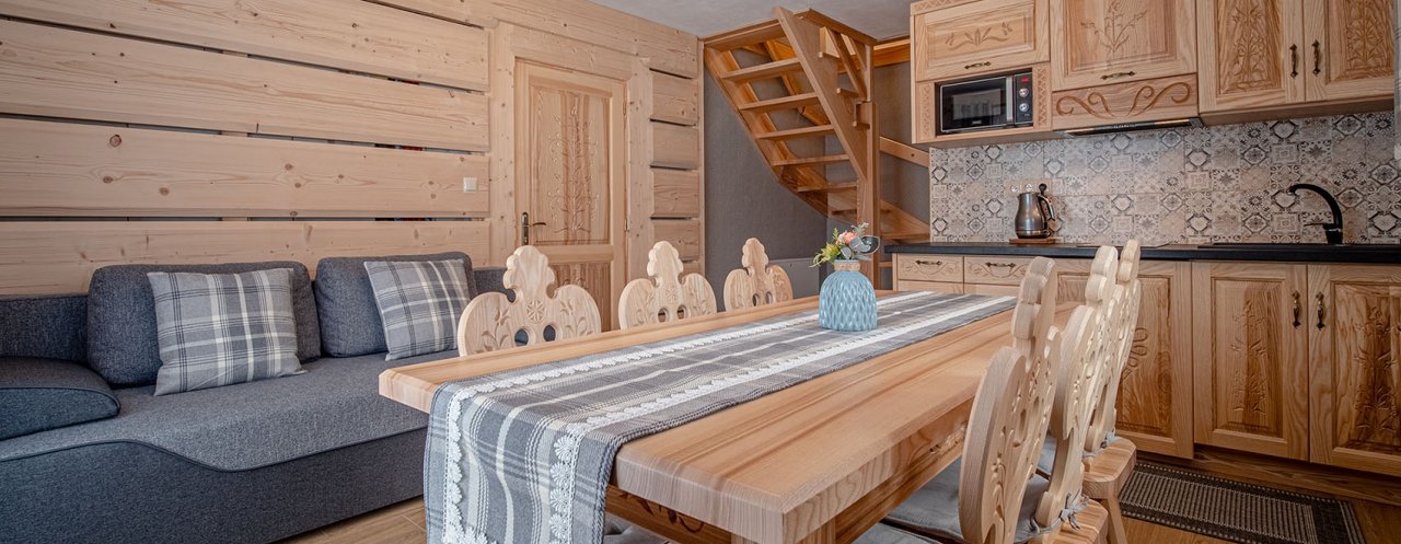 - duża stylowa drewniana góralska izba z kominkiem i otwartym paleniskiem